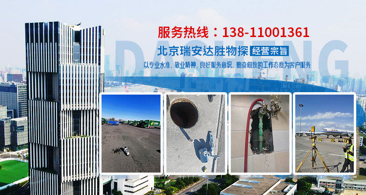 北京瑞安達勝物探技術有限公司成立于2012年,是一家管線探測、漏水檢測、地面空洞(塌陷、病害)檢測等業務的企業。公司自成立以來一直為各市政單位、開發商、設計單位、物業小區、學校、工廠等企事業單位提供:地下管線定位探測、漏水檢測、地質勘測、資源勘探等業務。